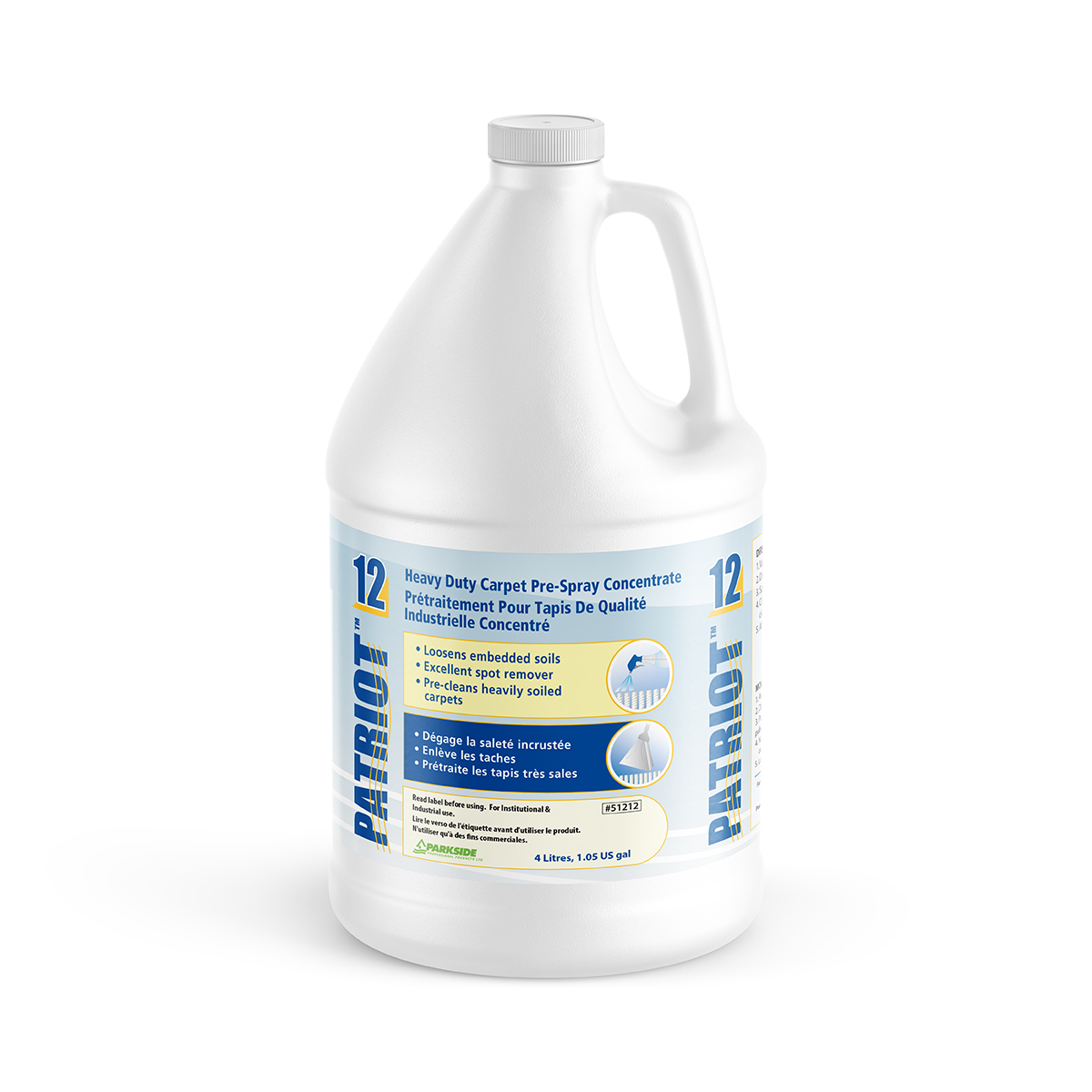 Patriot 12 Heavy-Duty Carpet Pre-Spray Concentrate loosens embedded soils, is an excellent spot remover, and pre-cleans heavily soiled carpets.