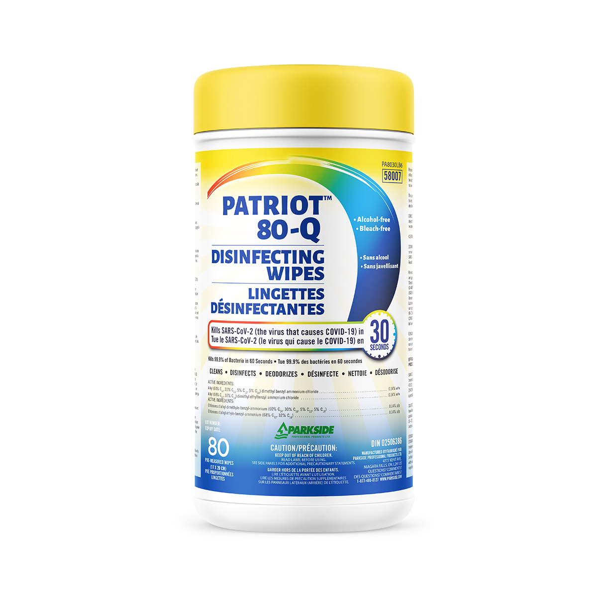 Patriot 80Q Disinfectant Wipes are used to remove or reduce microbes from hard surfaces. This wipes are intended for use in schools, athletic facilities, health clubs, physician’s offices, dental offices, nursing homes, daycare centers, emergency rooms, ambulances, home health care, veterinary clinics, kennels, beauty salons, barber shops, airports, supply centers, transport vehicles, laundry rooms, grocery stores, banquet halls, nurseries, households, residences, kitchens and bathrooms.