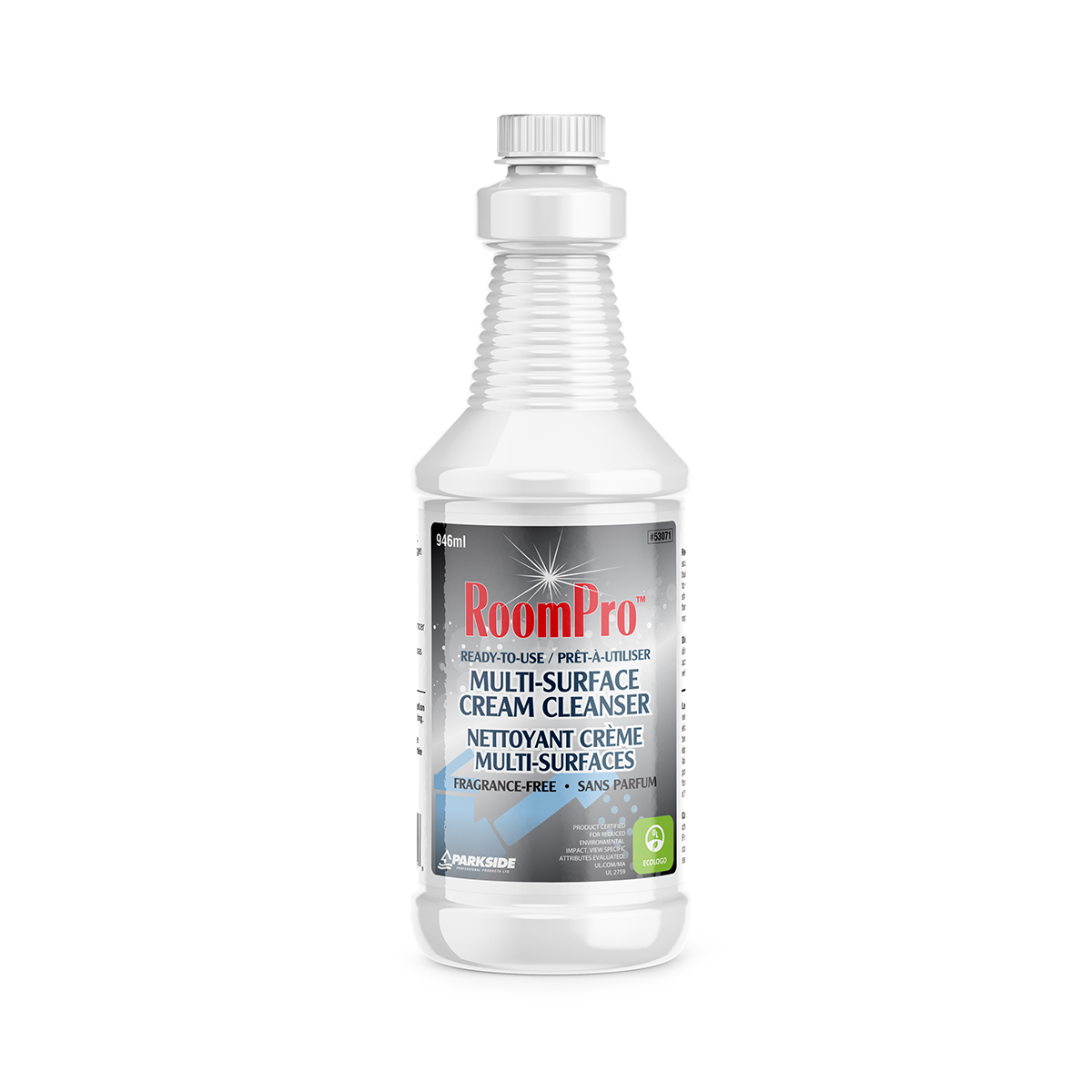 RoomPro Multi-Surface Cream Cleanser removes soap scum, scuffs, mildew stains, and other stubborn spots and build-ups without scratching.