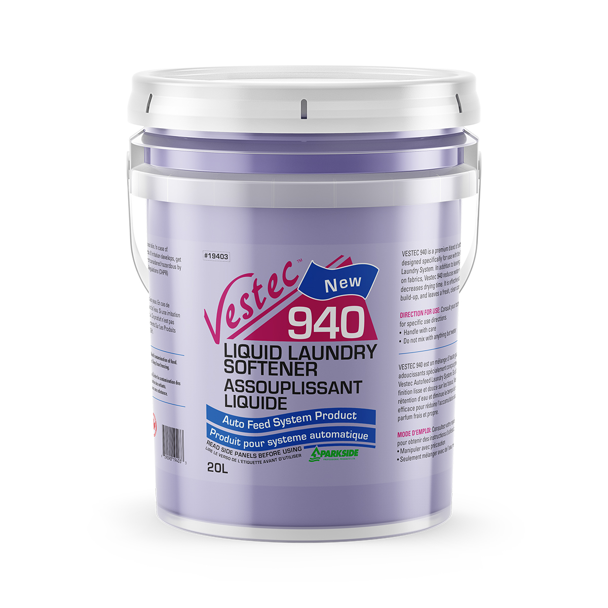 VESTEC 940 is a premium blend of softening ingredients designed specifically for use with the Vestec Autofeed Laundry System.